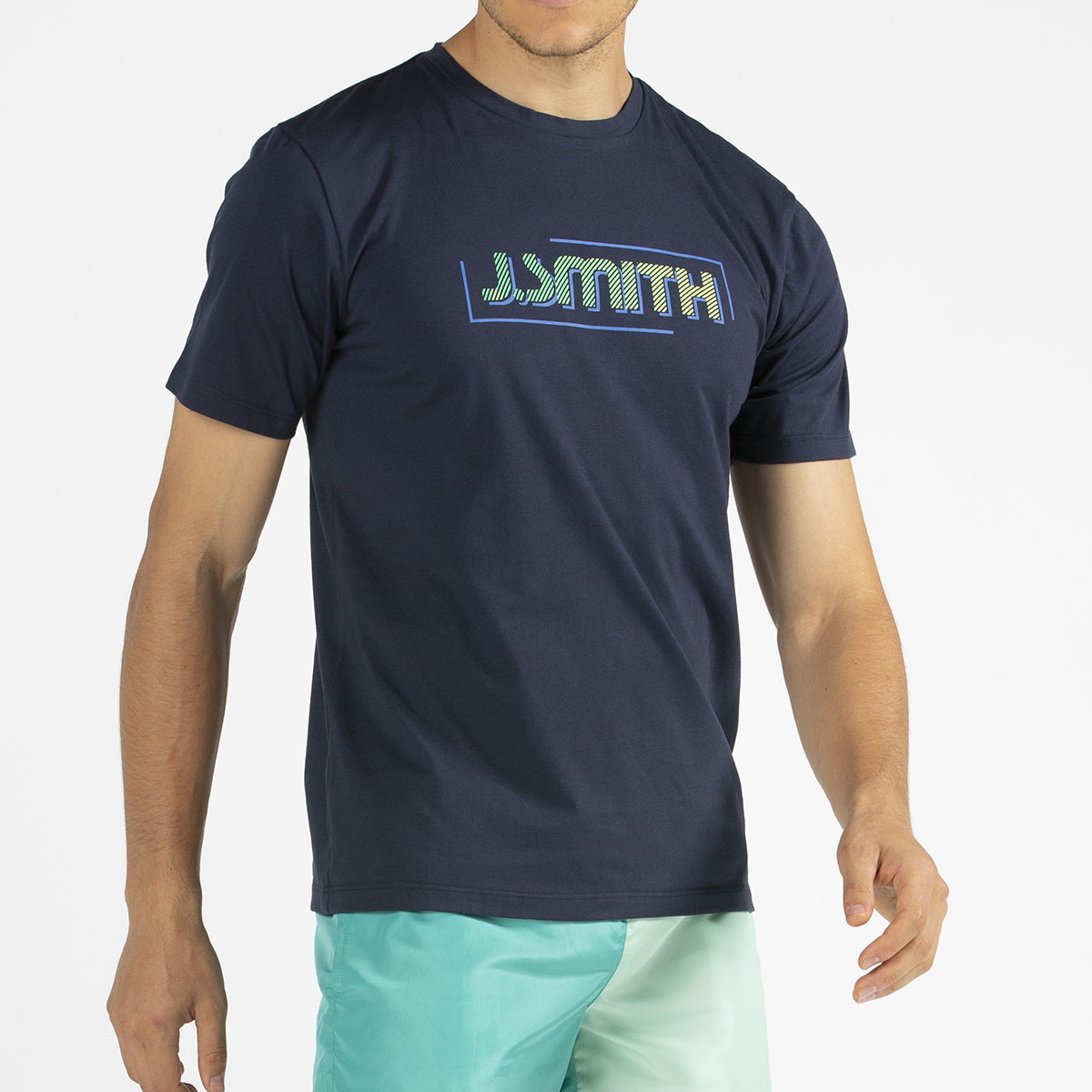 Camiseta John Smith Gael, 100%  algodón, de manga corta azul marino, con rib en el cuello y gráfico serigrafiado de John Smith verde en el pecho.