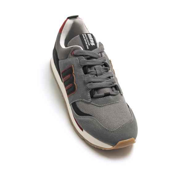 Deportiva de chico Mustang en color gris combinada en diferentes colores de temporada. Piso blanco de goma ideales para ir cómodo y ligero. Con cierre de cordones planos con paneles combinados en diferentes texturas. Unas Mustang ideales para tus looks de temporada, no te quedes sin ellas.