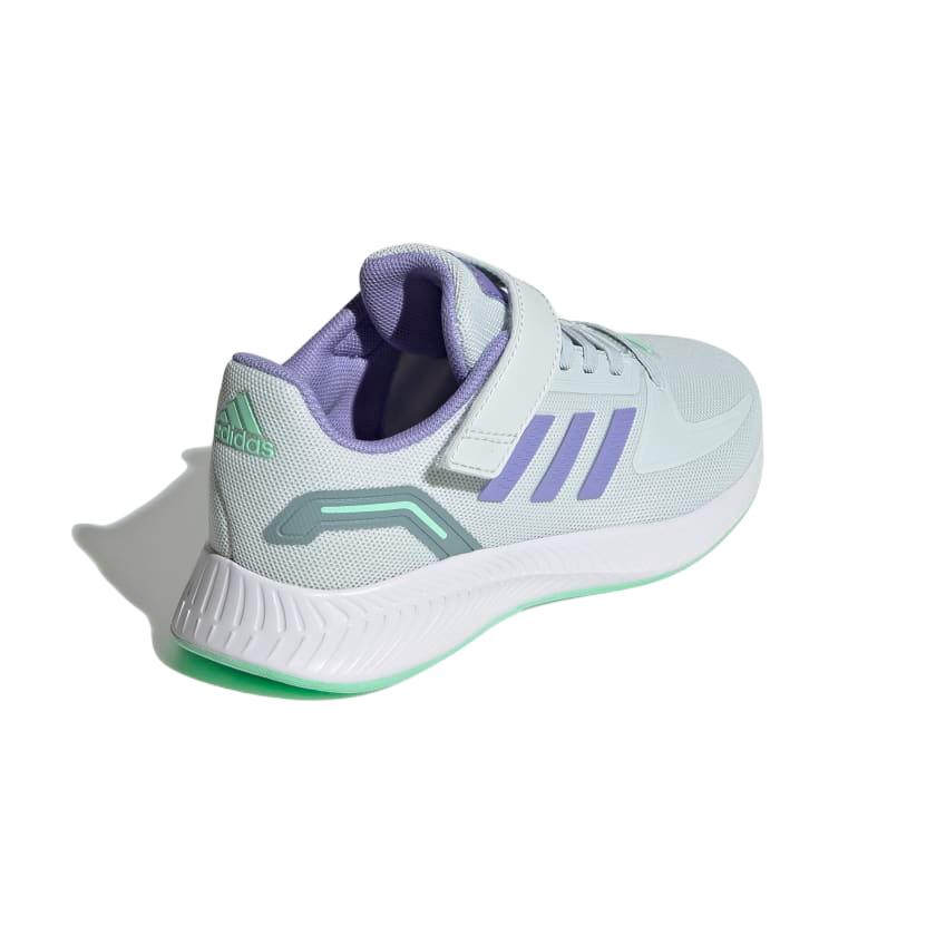 Adidas Runfalcon 2.0 de niña tipo running. Fabricada en textil transpirable, con mediasuela de EVA y suela de goma, para una mejor amortiguación y comodidad. Cierre de velcro y cordones elásticos. Es un diseño cómodo y ligero, para el disfrute de los niños, en  la práctica de cualquier tipo de deportes.
