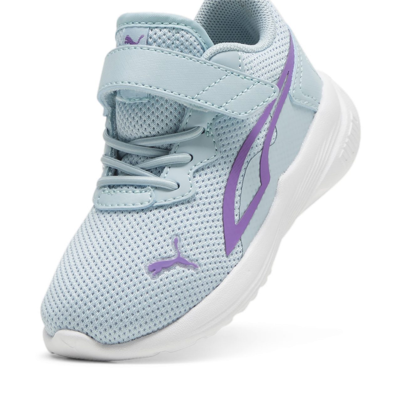 Las zapatillas deportivas para niñas de la marca Puma son ideales para actividades activas. En un atractivo color turquesa con el distintivo detalle de la marca en morado, estas zapatillas ofrecen un estilo vibrante y juvenil. Con cordones elásticos y cierre de velcro, garantizan un ajuste seguro y fácil de poner, proporcionando comodidad y practicidad para los pequeños deportistas